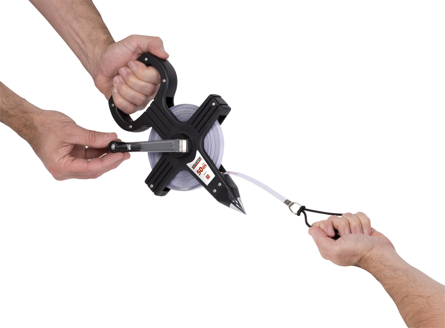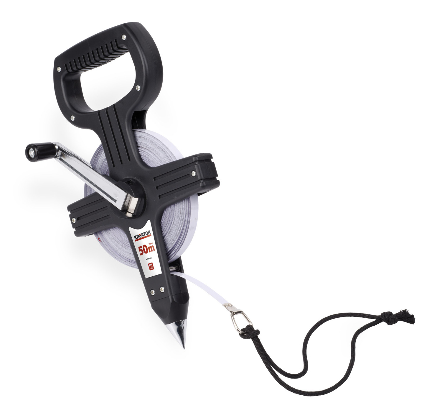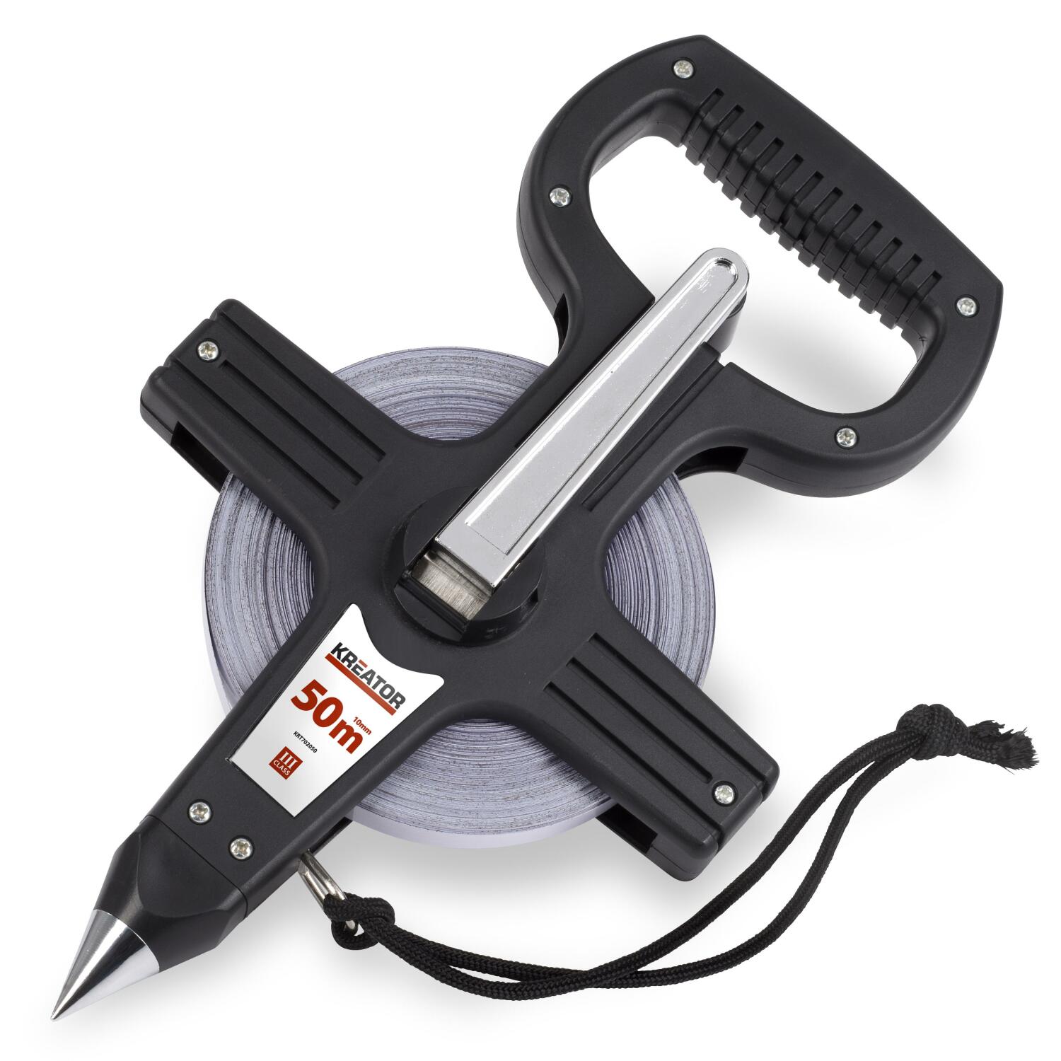 KREATOR KRT702050 terasest 50 m mõõdulint on ideaalne suuremate alade, nagu aed või maja ümber, mõõtmiseks. Lindi peal on metallist käepide, kokkuklapitav hoob ja metallist maapinna stake.