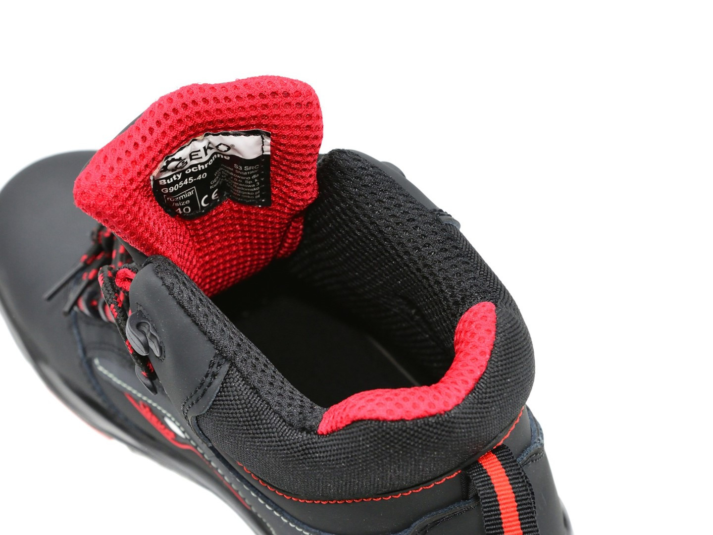 Drošības apavu kategorijas saskaņā ar PN-EN ISO 20345: ietekmes izturīgs kompozīta purngalis ar spēku 200J un spiedes spēku 15 kN