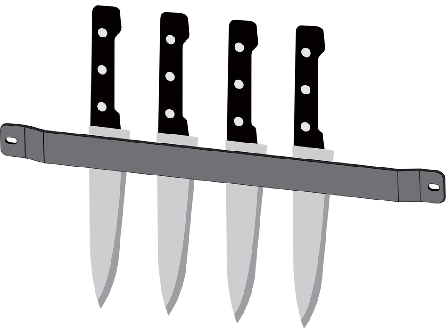 Terasknife hoidja, mis on mõeldud paigaldamiseks gaasigrilli perforeeritud seintele. Lubab rippida mitmeid noad.