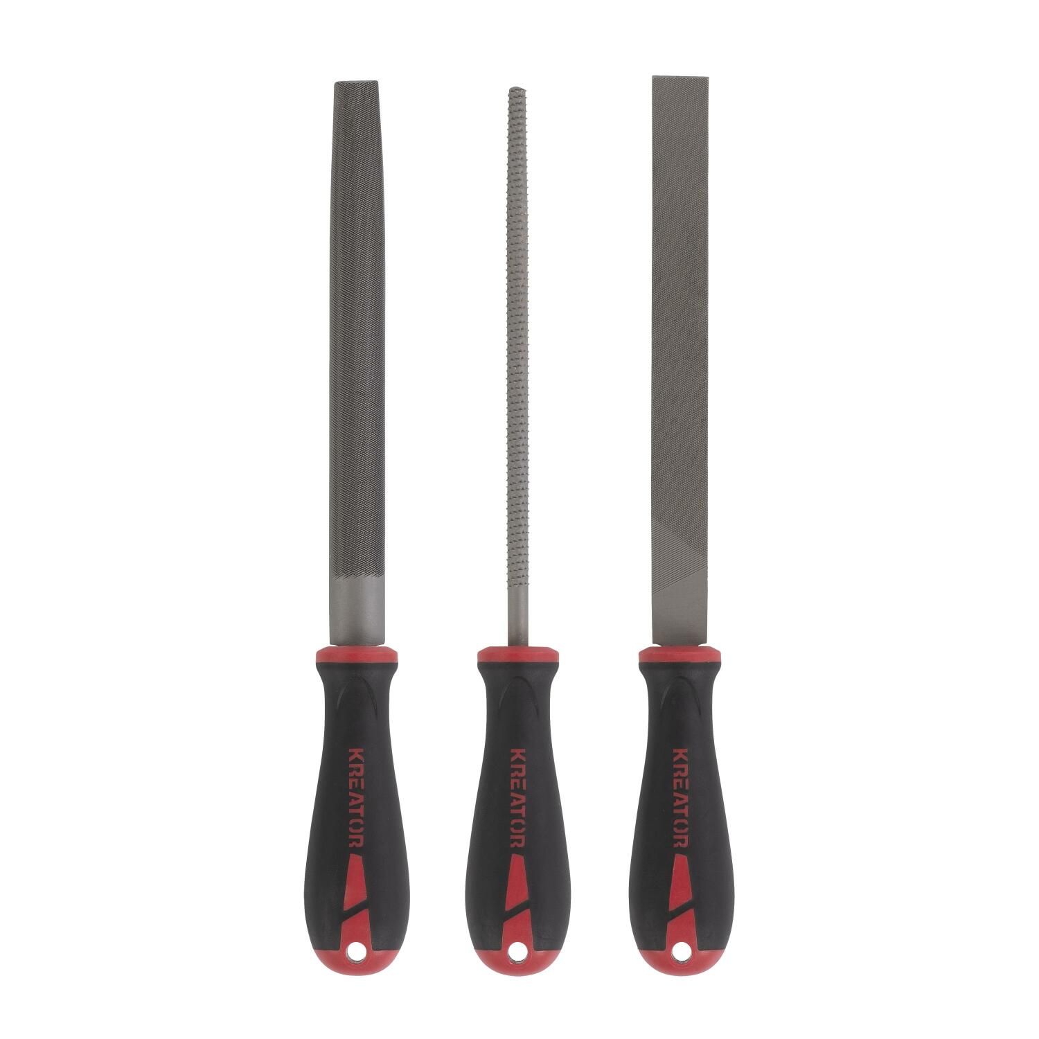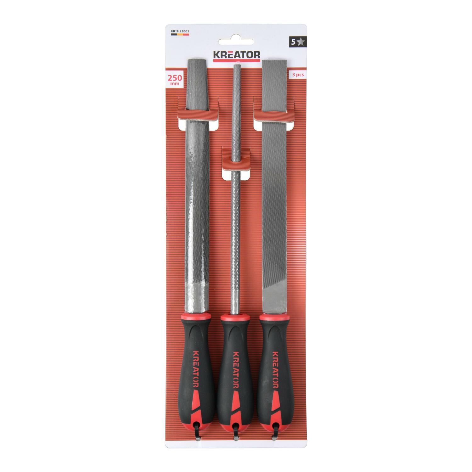 KREATOR (KRTH23001) Viilide komplekt 250 mm koosneb kolmest tükist: lame viil, ümar viil ja poolümar viil. See komplekt sobib ideaalselt peenestamiseks ja pealetungide andmiseks praktiliselt igasugusele objektile või pinnale.