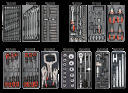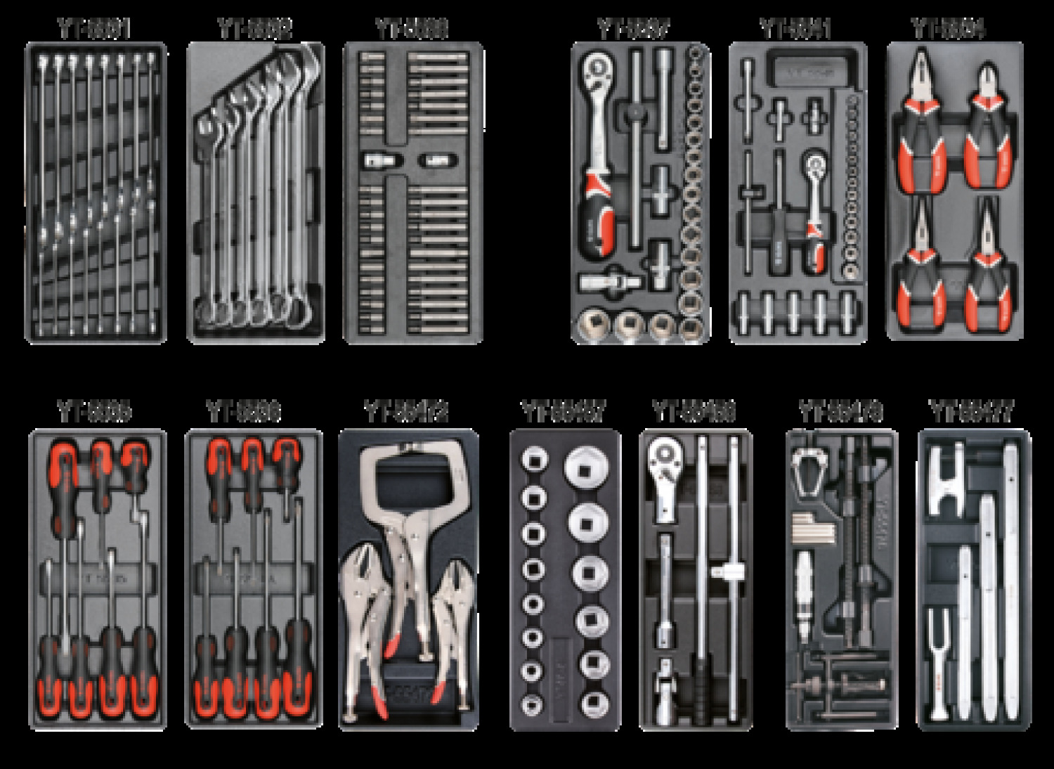 YATO brändi tööriistakapp, mis on varustatud 7 sahtliga, millel on kuulheitjatele mõeldud liugurid. Ülemised 5 sahtlit sisaldavad 165 hoolikalt valitud tööriista. Profiilid on valmistatud roostevabast terasplaadist - universaalne perforatsioon võimaldab kappi täiendada täiendavate elementidega. Keskne lukustus ja iga sahtli individuaalne lukustus tagavad tööriistade ohutuse.